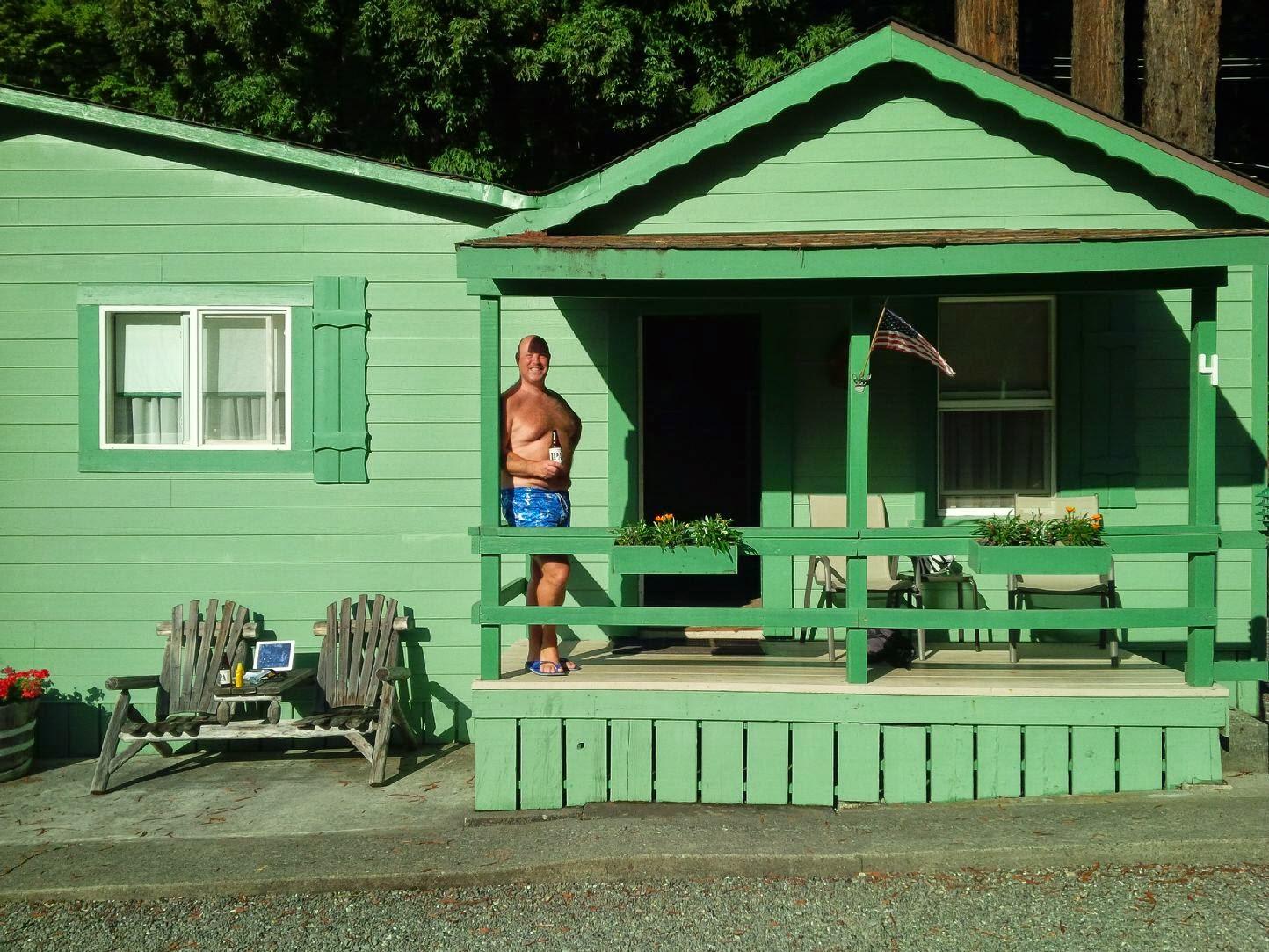 After our rest day we did 2 easy days, to Gold Beach, OR and then Crescent City, CA. Both were cool and overcast with a pesky headwind but soon done. In Gold Beach we had magnificent steaks the size of a baseball glove in a proper restaurant with table cloths, napkins and everything. It will rank in my all time best 5 steaks!!!