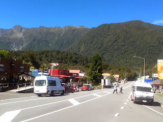 It is now Thursday and we are in Fox Glacier but there is still no polar bear on a mint. We are staying in the Bella Vista motel but the vista is only really bella if you can find somewhere to stand with the motel behind you.